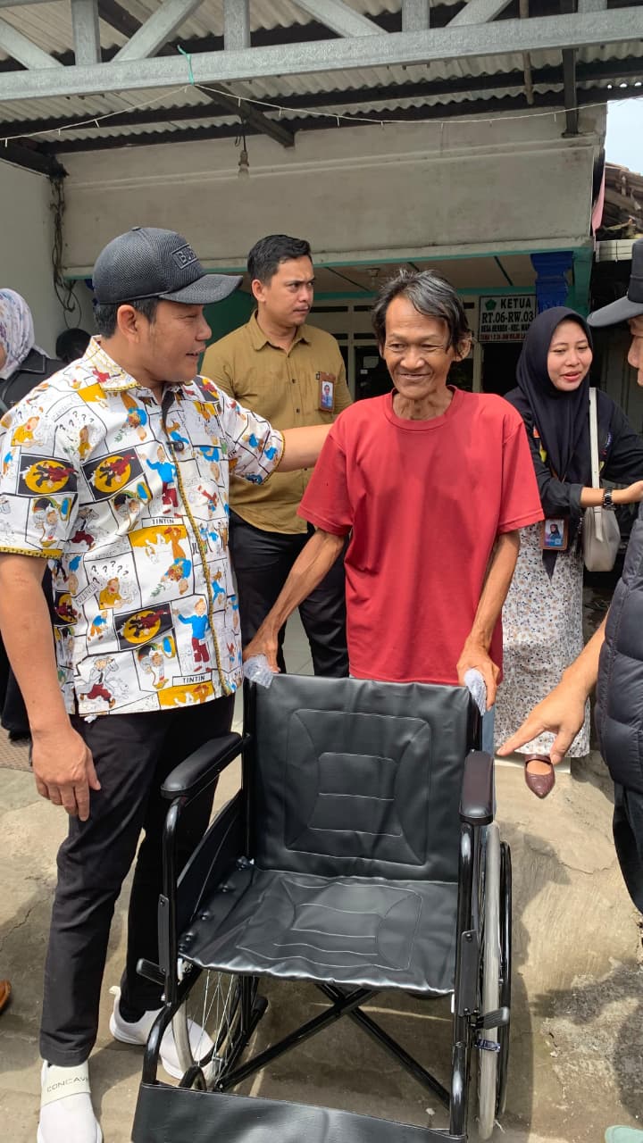 Kursi roda diserahkan guna memudahkan aktivitasnya serta memastikan pendampingan sosial terus diberikan.