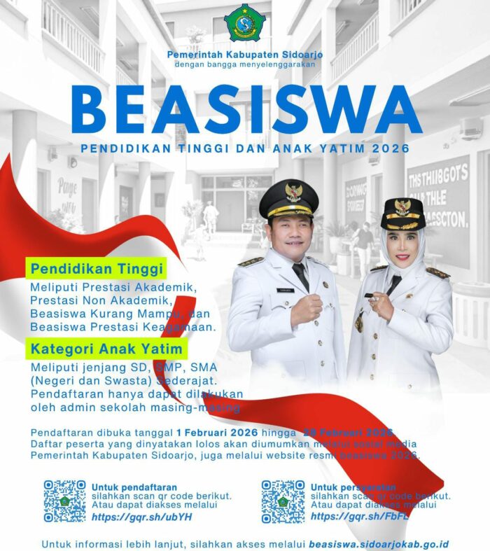 Sidoarjo, Eksklusif.co.id – Pemerintah Kabupaten Sidoarjo kembali menunjukkan komitmennya dalam meningkatkan kualitas sumber daya manusia melalui pelaksanaan Program Beasiswa Tahun 2026.
