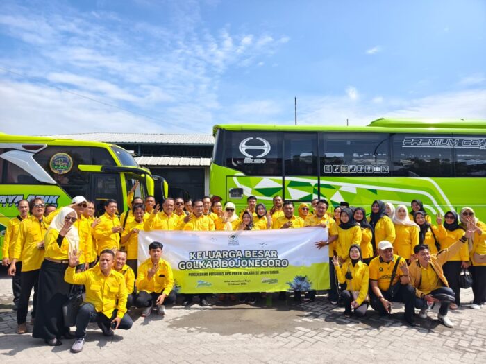 Bojonegoro, Eksklusif.co.id — Dewan Pimpinan Daerah (DPD) Partai Golongan Karya Kabupaten Bojonegoro memberangkatkan dua bus rombongan kader menuju Surabaya untuk menghadiri agenda pengukuhan pengurus harian kabupaten/kota se-Jawa Timur, Minggu (15/2/2026).