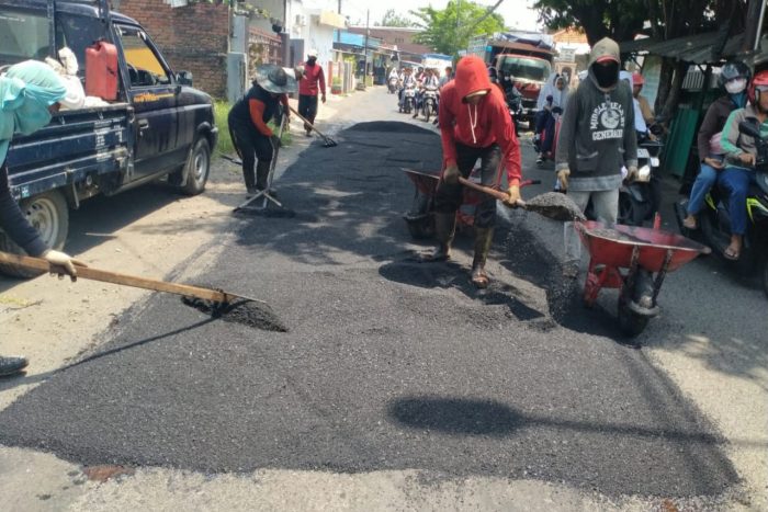 Pemerintah Kabupaten Sidoarjo bergerak cepat menambal titik-titik berlubang melalui tim tanggap darurat.