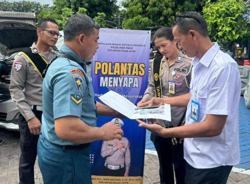 Surabaya, eksklusif.co.id – Program “Polantas Menyapa” yang digagas Ditlantas Polda Jawa Timur kembali menghadirkan inovasi dalam pelayanan publik yang humanis dan responsif di Kantor Bersama (KB) Samsat Surabaya Utara.