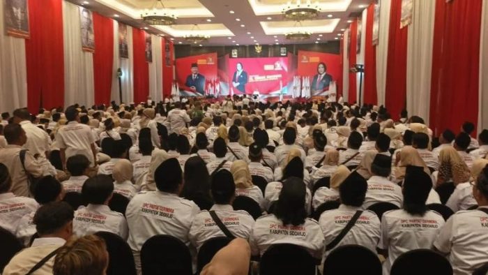 Gerindra se- Sidoarjo, hadir dihadapan ribuan massa pengurus kader memenuhi seisi ballroom hotel.