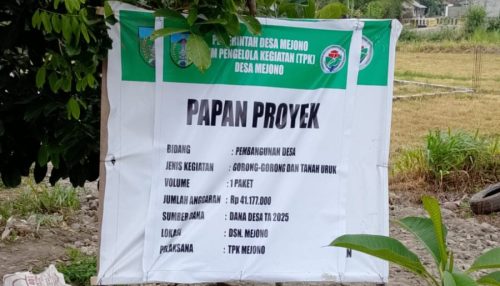 Kediri, Eksklusif.co.id – Pemerintah Desa (Pemdes) Mejono, Kecamatan Plemahan, Kabupaten Kediri, melaksanakan pembangunan infrastruktur jalan desa yang mencakup pekerjaan gorong-gorong serta penimbunan tanah uruk. Proyek ini menghubungkan Dusun Sumbermulyo menuju Dusun Mejono dan mulai dikerjakan sejak 20 Oktober 2025.