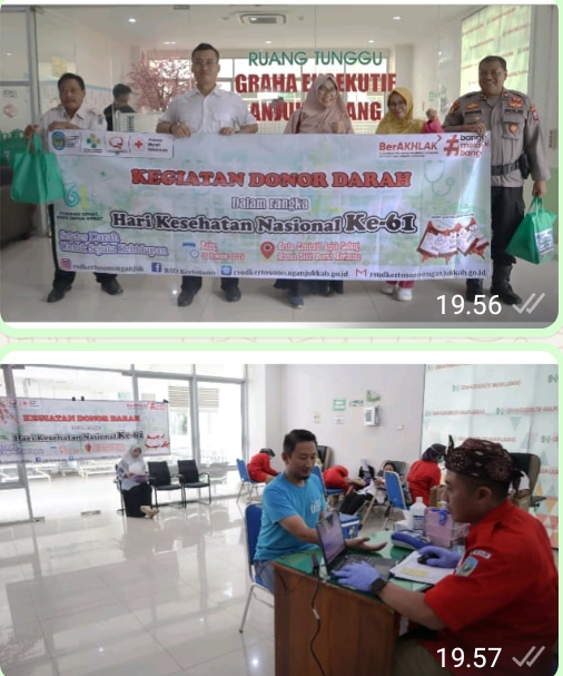 Nganjuk, Eksklusif.co.id – Dalam rangka memperingati Hari Kesehatan Nasional (HKN) ke-61, Rumah Sakit Daerah (RSD) Kertosono bekerja sama dengan Palang Merah Indonesia (PMI) Kabupaten Nganjuk menggelar kegiatan donor darah pada Rabu (5/11/2025), bertempat di Gedung F Lantai 1, Grand Anjuk Ladang.
