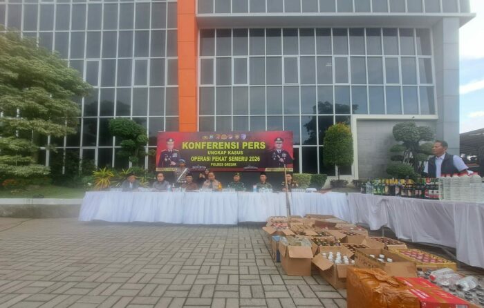 Gresik, Eksklusif.co.id — Polres Gresik menunjukkan ketegasannya dalam memberantas peredaran minuman keras (miras) di wilayah hukum Kabupaten Gresik. Dalam konferensi pers yang digelar pada Kamis (12/3/2026) sore, Kapolres Gresik Polres Gresik hasil tangkapan Operasi Pekat Semeru 2026.