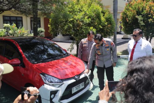 Dari tangan HK, petugas menyita barang bukti berupa Satu unit mobil Toyota Agya warna putih dengan cutting merah yang digunakan dalam aksi kejahatan.