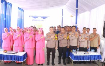 Puluhan Polisi Lalu Lintas berpakaian dinas lengkap terlihat aktif berinteraksi dengan warga, menciptakan suasana yang humanis dan penuh keakraban.(Red/Muis)