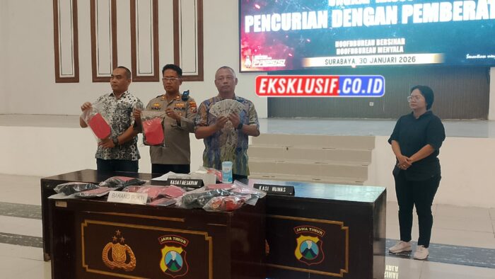 Dalam konferensi pers Jumat (30/01/2026) di Gedung Bhara Daksa Mapolrestabes Surabaya, Kasatreskrim Polrestabes Surabaya, AKBP Eddy Herwiyanto menjelaskan bahwa penangkapan empat tersangka ini berdasarkan laporan korban dan kemudian ditindak lanjuti dengan melakukan ngecek rekaman CCTV yang ada di toko hingga petugas kepolisian berhasil mengidentifikasi pelaku melalui mobil yang digunakan.