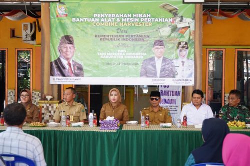 Sidoarjo, eksklusif.co.id – Dalam upaya meningkatkan efisiensi pertanian di wilayahnya, Wakil Bupati Sidoarjo, Hj. Mimik Idayana, menyerahkan bantuan alat mesin pertanian (Alsintan) berupa satu unit Combine Harvester kepada Gabungan Kelompok Tani (Gapoktan) Desa Sukodono, Kecamatan Sukodono, Kabupaten Sidoarjo.
