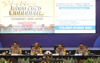 Kota Malang – Waka Polda Jawa Timur Brigjen Pol Dr. Pasma Royce, S.I.K, M.H bersama Karo Renminops Korbrimob Polri Brigjen Pol Drs. Rudy Hariyanto, M.Si meninjau langsung ke Venue Kejuaraan Nasional Institut Karate-do Nasional (INKANAS) Kapolri Cup 2024 di GOR Ken Arok, Kota Malang, pada hari Kamis (12/12/2024).